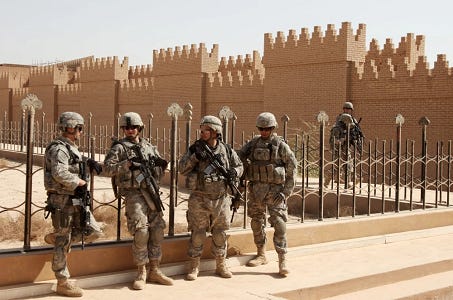 But when I checked, Masiriyah was southern Iraq while Babylon is central Iraq, and the American troops covered it in not-glory.